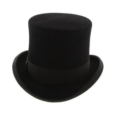 The Top hat is a traditional formal felt hat. This fashion hat is classically used for Weddings & Race days, a great finishing touch for a formal occasion. The hat has a 38 mm ribbon band, bow on the right hand side and is satin lined. The brim of the Top Hat is 57 mm x 60 mm with a bound edge and 180 mm high.